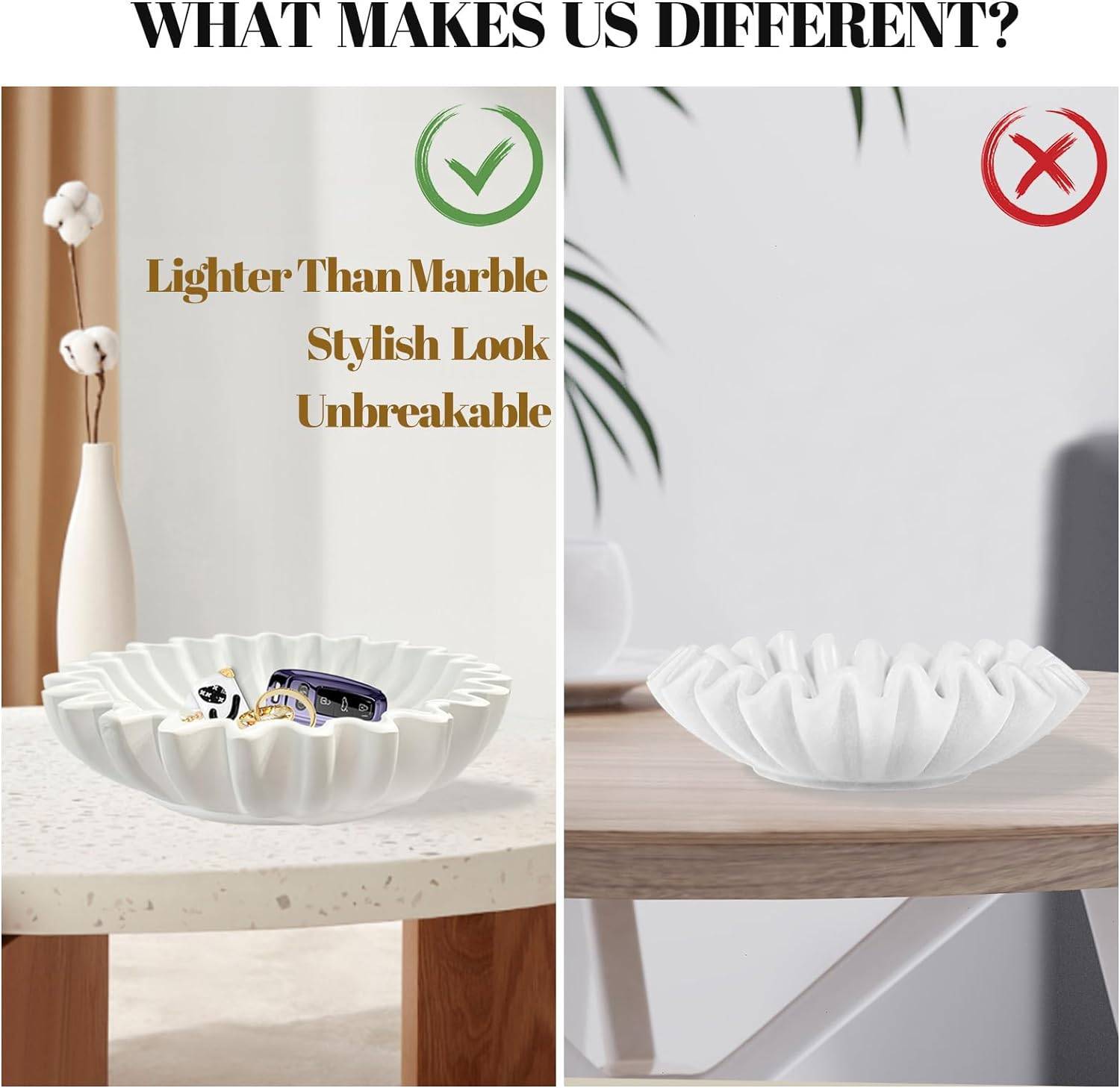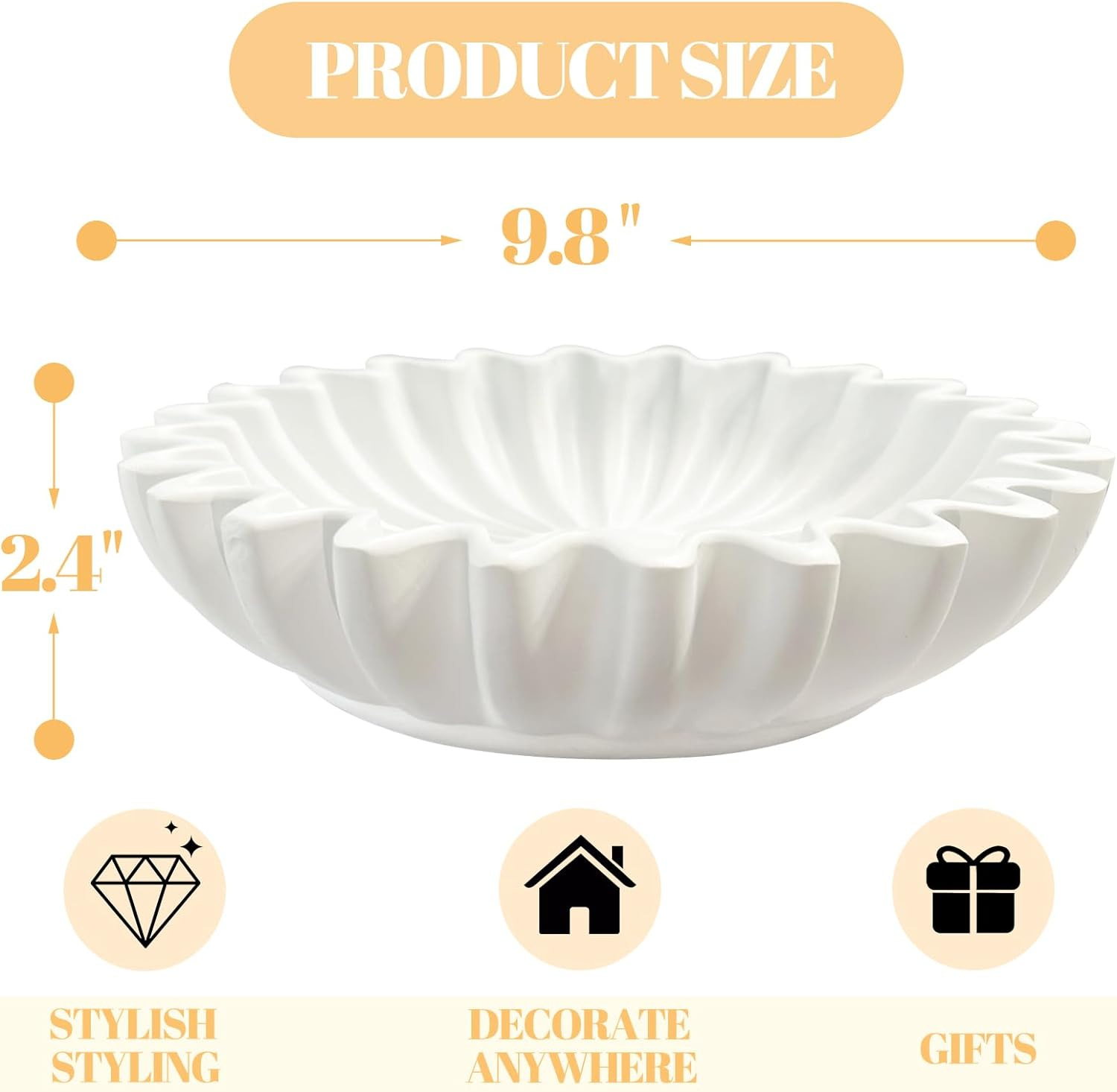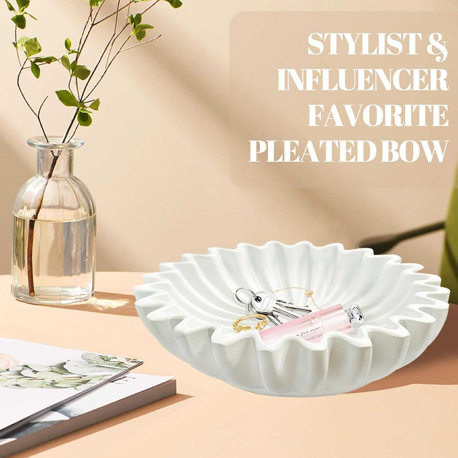 Descubre cómo un detalle puede transformar tu espacio. Este bowl decorativo con borde acanalado aporta una textura sofisticada y un toque moderno a cualquier ambiente de tu hogar. Su acabado blanco neutro y su diseño escultural lo convierten en una pieza ideal para complementar salas de estar, mesas de centro, consolas, recibidores y estanterías.