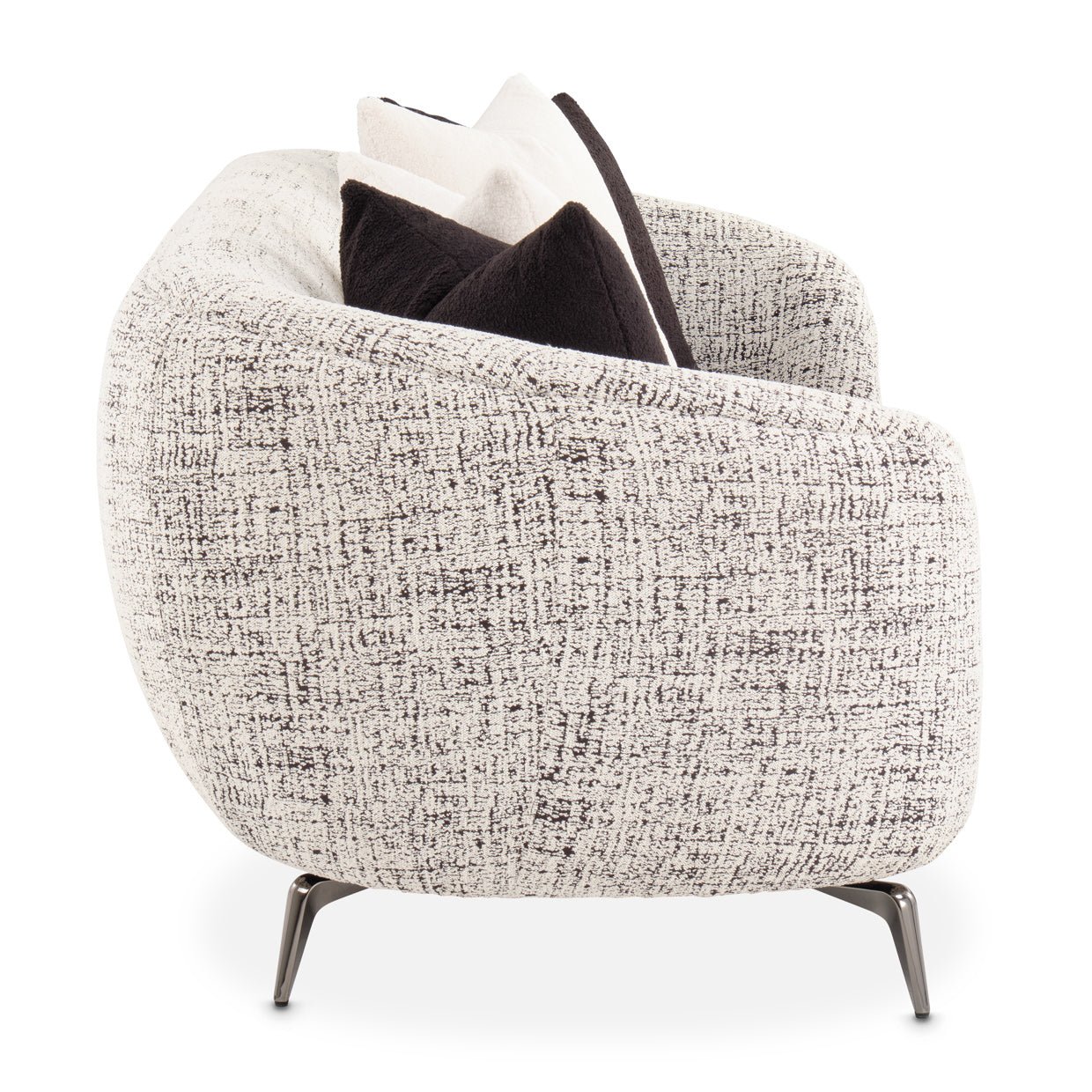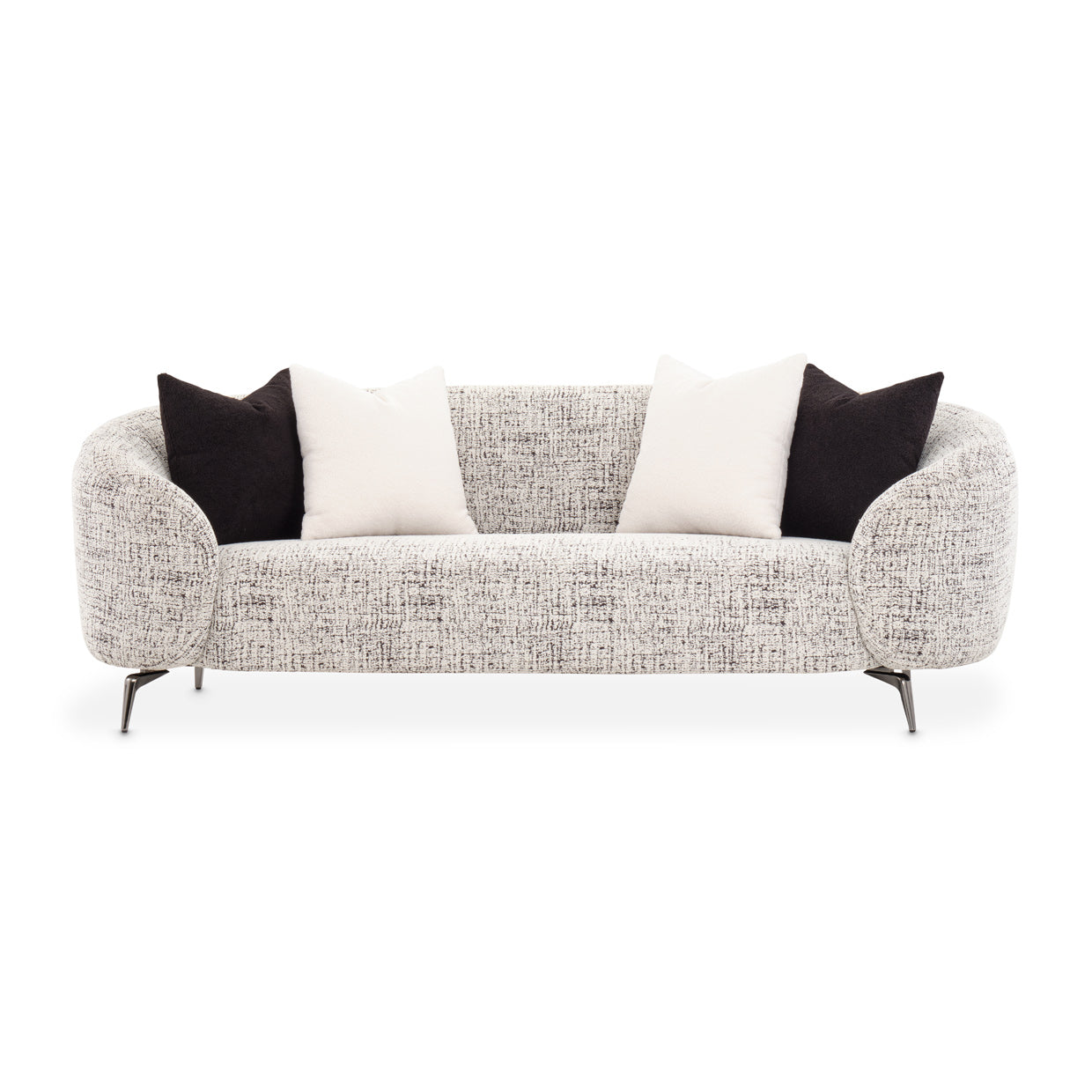 Nuestro sofá Boucle en negro y marfil es perfecto para un estilo de vida elegante y cómodo. Con su estilo informal de lujo, esta pieza versátil puede combinar fácilmente con cualquier habitación moderna o de transición. Los brazos redondeados agregan un toque de elegancia, mientras que las patas de níquel negro brindan un acabado moderno y elegante. Sumérjase en el acogedor y suave material boucle y relájese con estilo. Mejora la decoración de tu hogar con esta combinación perfecta de estilo y comodidad.