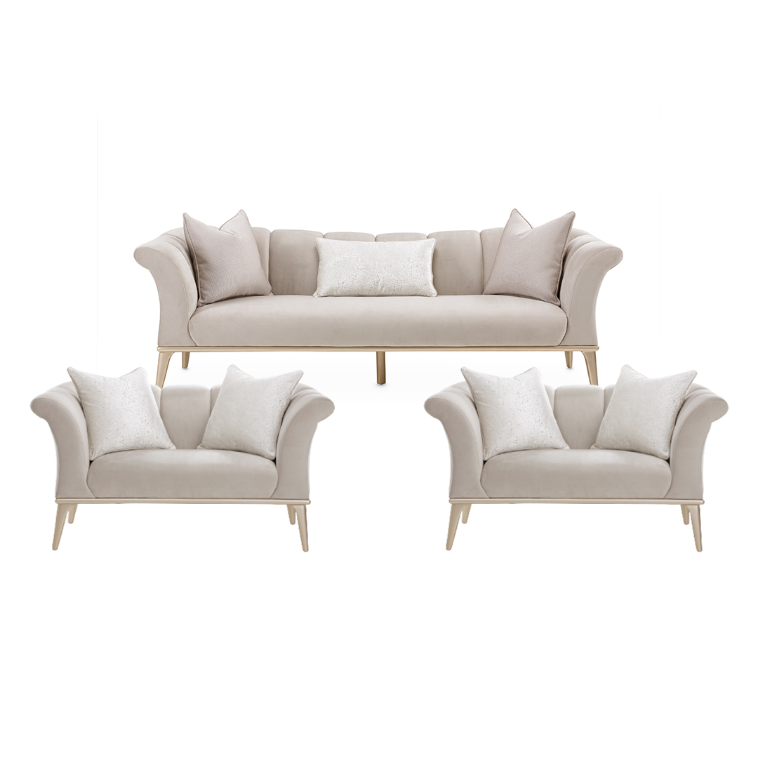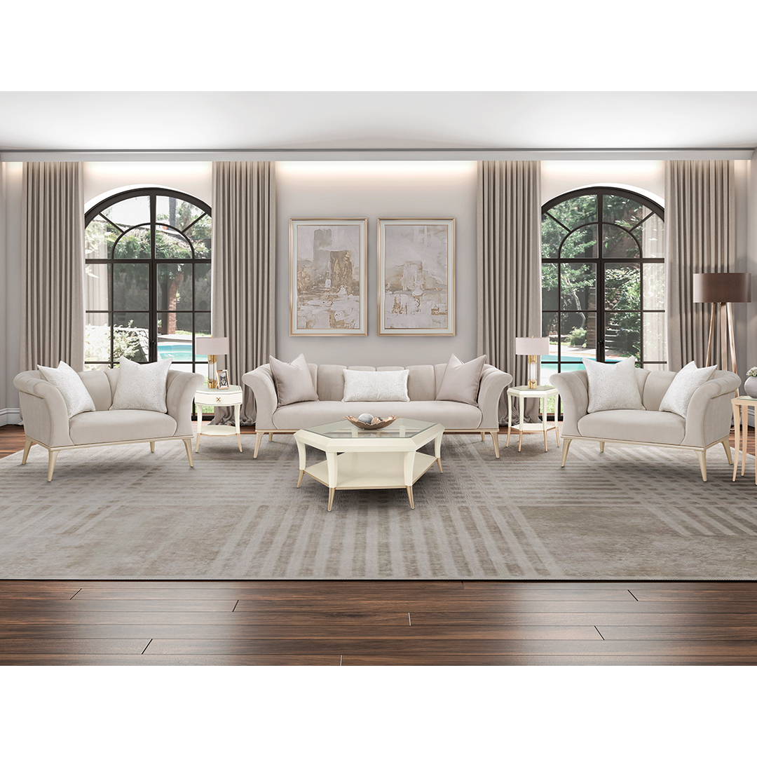 ¡Yvette hace que descansar se vea mejor que nunca! Sumérjase en los asientos de terciopelo, relájese contra la glamorosa silueta acampanada y deje que el acabado de latón cepillado pintado ilumine su espacio vital. Diseñado con elegantes tonos neutros y formas llamativas, este grupo está hecho con los mejores detalles atemporales.
